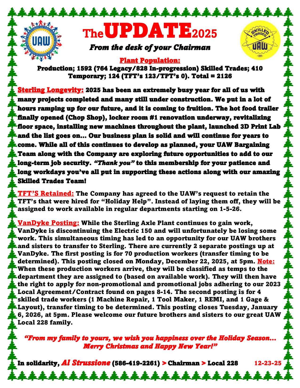 Chairperson Al Strussione’s Monthly Plant Update: Current Highlights & What’s Ahead at Sterling Axle